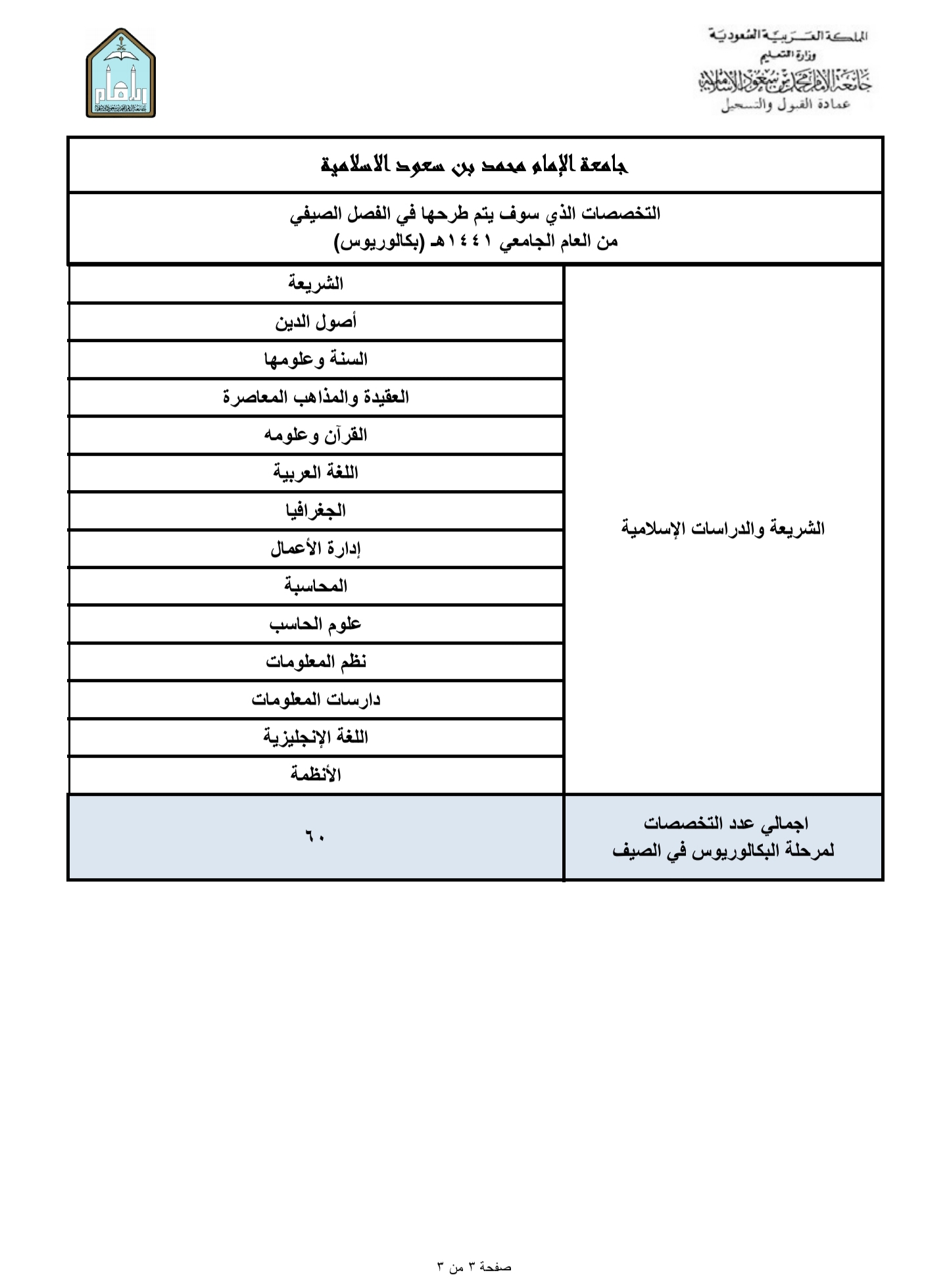 جامعة الإمام محمد بن سعود الإسلامية On Twitter عمادة القبول والتسجيل في جامعة الإمام تعلن عن التخصصات المتاحة في الفصل الصيفي للعام الجامعي ١٤٤١هـ Https T Co 30vgeiv1tg Https T Co Aeqpgvcxzo